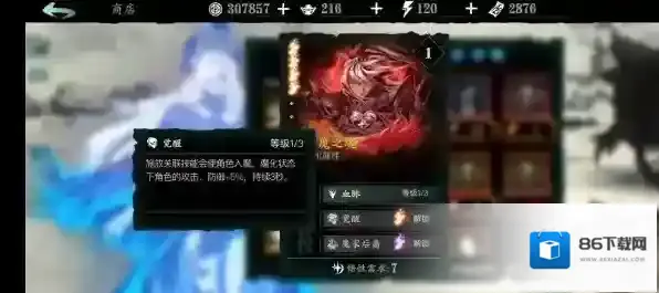 万魔之魂:1绝技增加角色基础面板的暴伤,非常强力;2绝技的增伤增防buff也非常可观;3绝技免控,前期用到后期的神技。