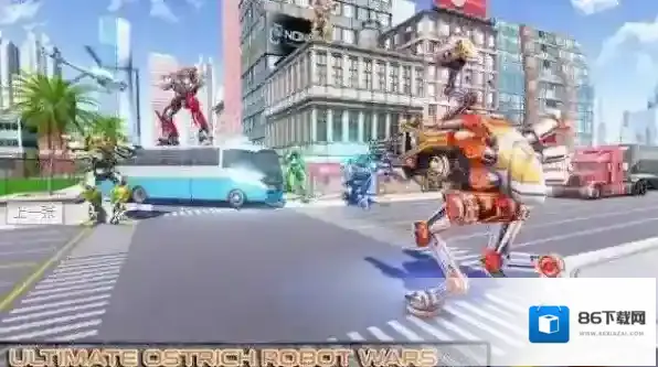 3、关卡选择页,点击1号关卡(唯一解锁),操控机甲/汽车,在城市环境中,完成战斗挑战,推进游戏。