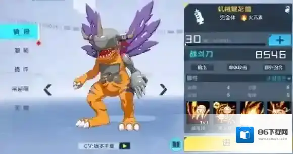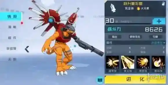 2、数码宝贝可以通过进化改变形态,提升自身的属性和技能强度。