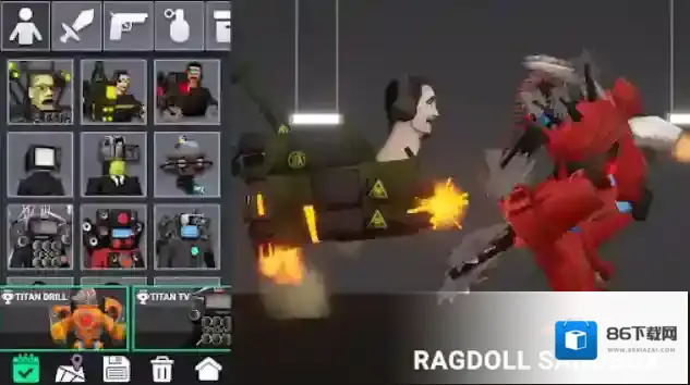 布娃娃沙盒游乐场3D,英文全名为Last Play:Ragdoll Sandbox,是一款3D题材的沙盒模拟游戏。你将会踏入一个迷人的3D沙盒世界当中,在这里创建各种各样有意思的角色,如布娃娃、马桶人、电视人,甚至是僵尸!我们还能够在场景中放置各种工具和武器,利用这些道具实现与角色之间的精彩互动,尽情的享受这个过程!除此之外,我们还能够去体验各种有意思的小游戏模式,如趣味的马桶人闯关,或者是消灭马桶人的肉鸽模式,全都非常有意思哦!
