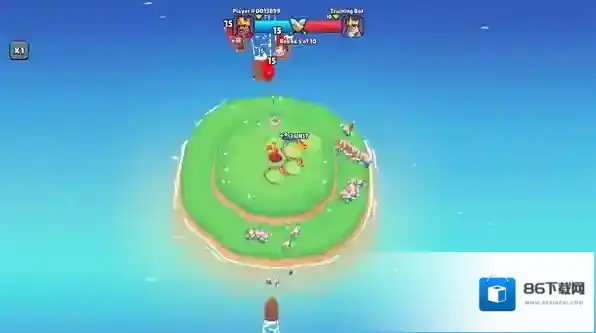 3、放好后就会开始闯关,中间的国王会旋转来召唤小兵,每次经过建筑都会召唤一个小兵。