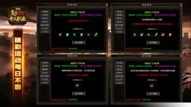 圣壕复古多职业,经典180复古三职业特色版本,在经典的战、法、道三大职业基础上,为每一个职业细分了四个流派,玩法丰富多样,体验起来各有千秋!游戏内所有的装备、道具都可以通过打怪获取,前期的地图中也能够掉落各种等级装备!每日还有各种精彩的活动不断,丰富的福利领不停,更有超多装备可以任意搭配,玩法琳琅满目!