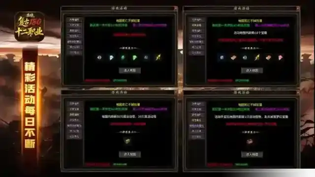 圣壕复古多职业,经典180复古三职业特色版本,在经典的战、法、道三大职业基础上,为每一个职业细分了四个流派,玩法丰富多样,体验起来各有千秋!游戏内所有的装备、道具都可以通过打怪获取,前期的地图中也能够掉落各种等级装备!每日还有各种精彩的活动不断,丰富的福利领不停,更有超多装备可以任意搭配,玩法琳琅满目!