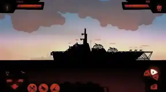 5、滑动屏幕可以移动视角,能观察对方舰船的动向。屏幕上方左侧的时玩家的血量,右侧的是敌人血量,当敌人血量为零时就可以通关。