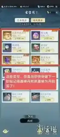 8、在灵石商店中,建筑材料前期建议直接购买完毕,三阶灵石在丹药未吃满30个前也应全部购买,然而,当接近进阶时,可以考虑暂停购买种子。